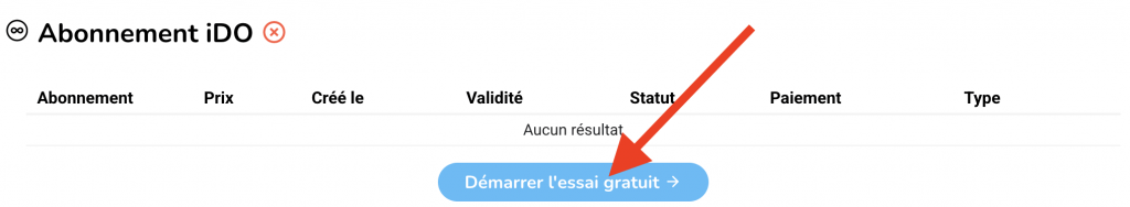 2- Dans l’encart « Abonnement iDO« , clique sur « Démarrer la période d’essai » ou « démarrer un nouvel abonnement »