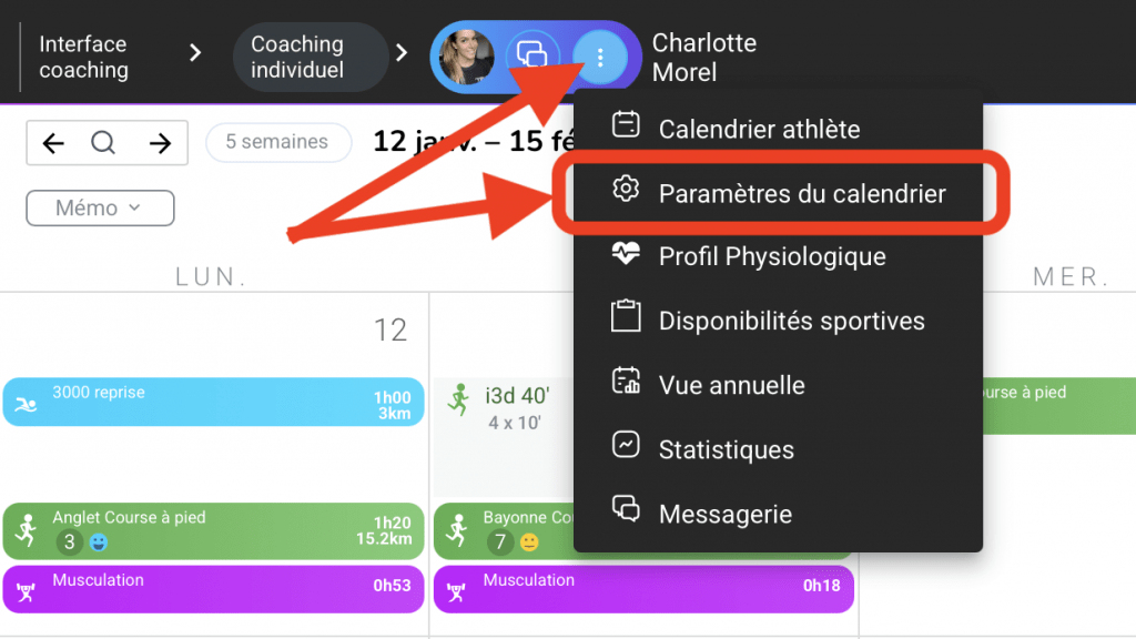 Étape 1 : Accéder aux paramètres du calendrier de l’athlète