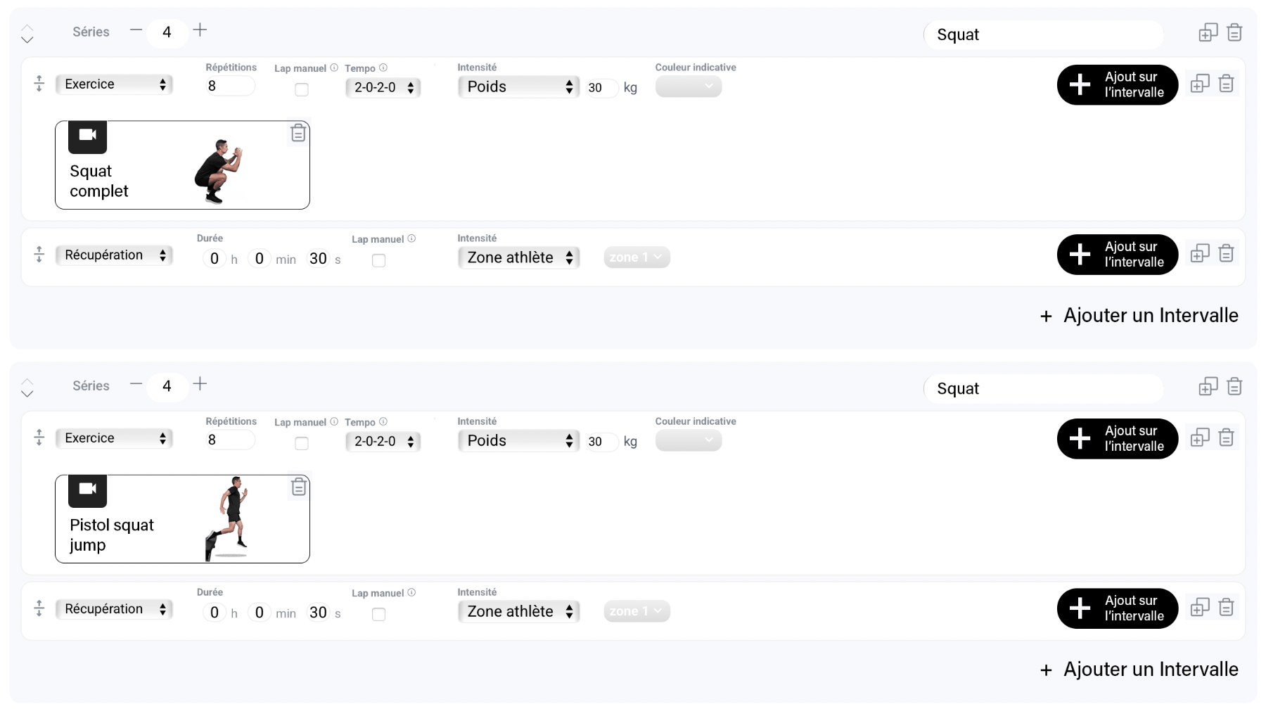 En tant que coach, tu peux maintenant paramétrer chaque exercice dans les moindres détails :